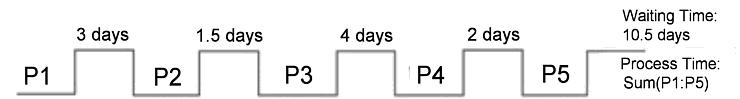 In some engineered products businesses, the products you are making are similar and take most of the same steps, but the process times vary immensely based on the product size or complexity. You can still use value stream mapping, simply ignore process times all together (treat them as variable), and focus on waste between processes in the lead time ladder, as shown below: